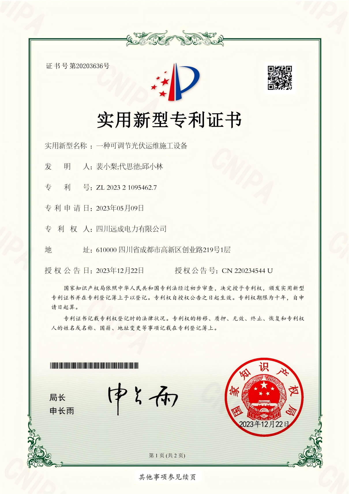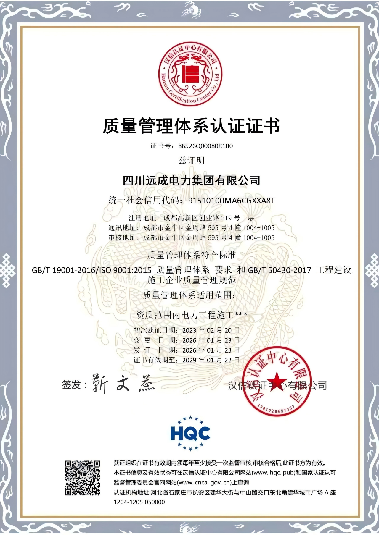 四川远成电力集团有限公司成立于2018年06月,是一家专业从事国内外电力设施施工总承包和电力技术研发与应用的施工企业。公司在中东、非洲等8个国家10余个城市均有完工项目案例,已与中国华能、中国华电、国家能源、国家电网、南方电网、中国建筑、中国交建、中国铁建、中国电建、中国能建、中国五矿等国内外上百家优质央国企建立长期友好合作。